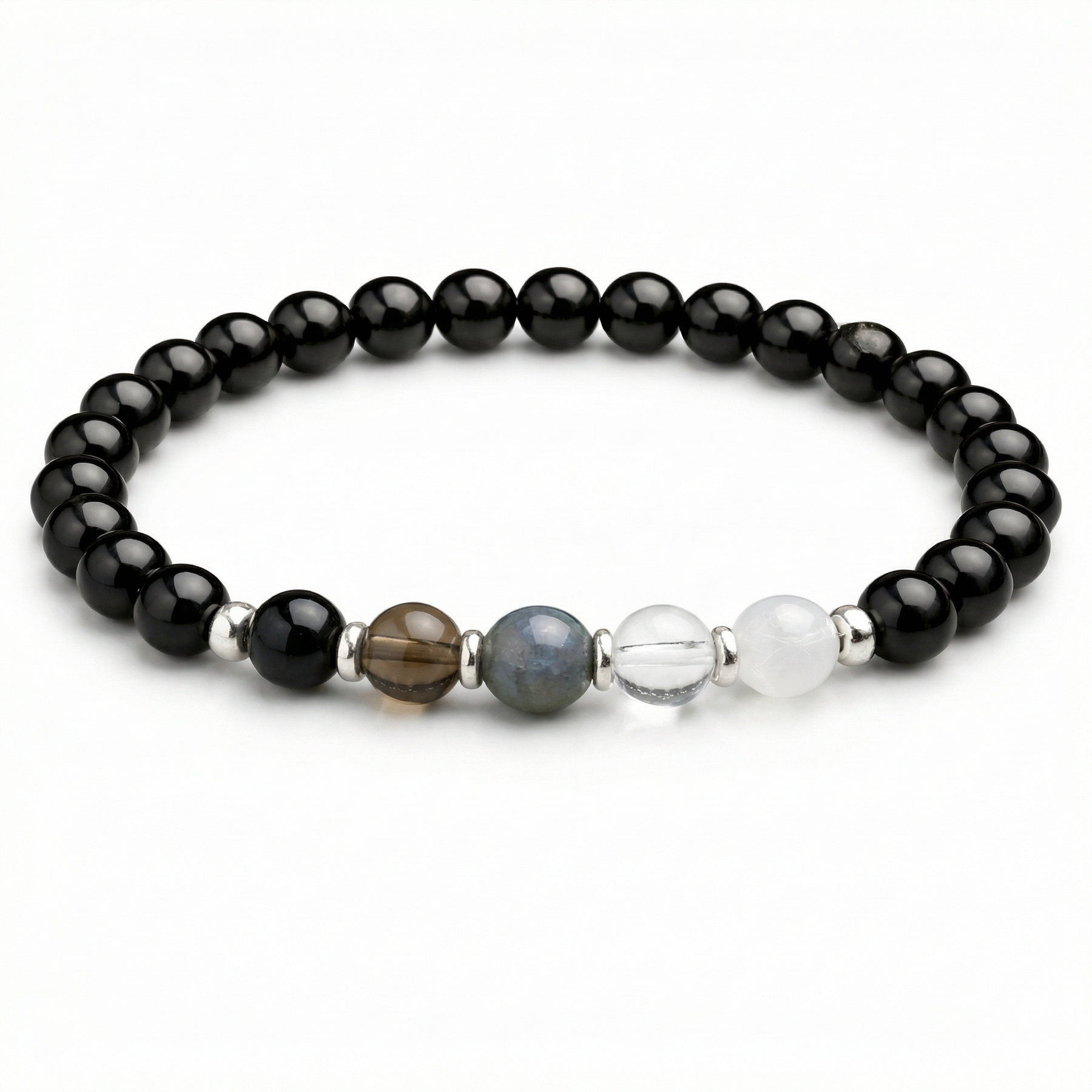 6mm Black Tourmaline with Lunar Gemstone Sequence