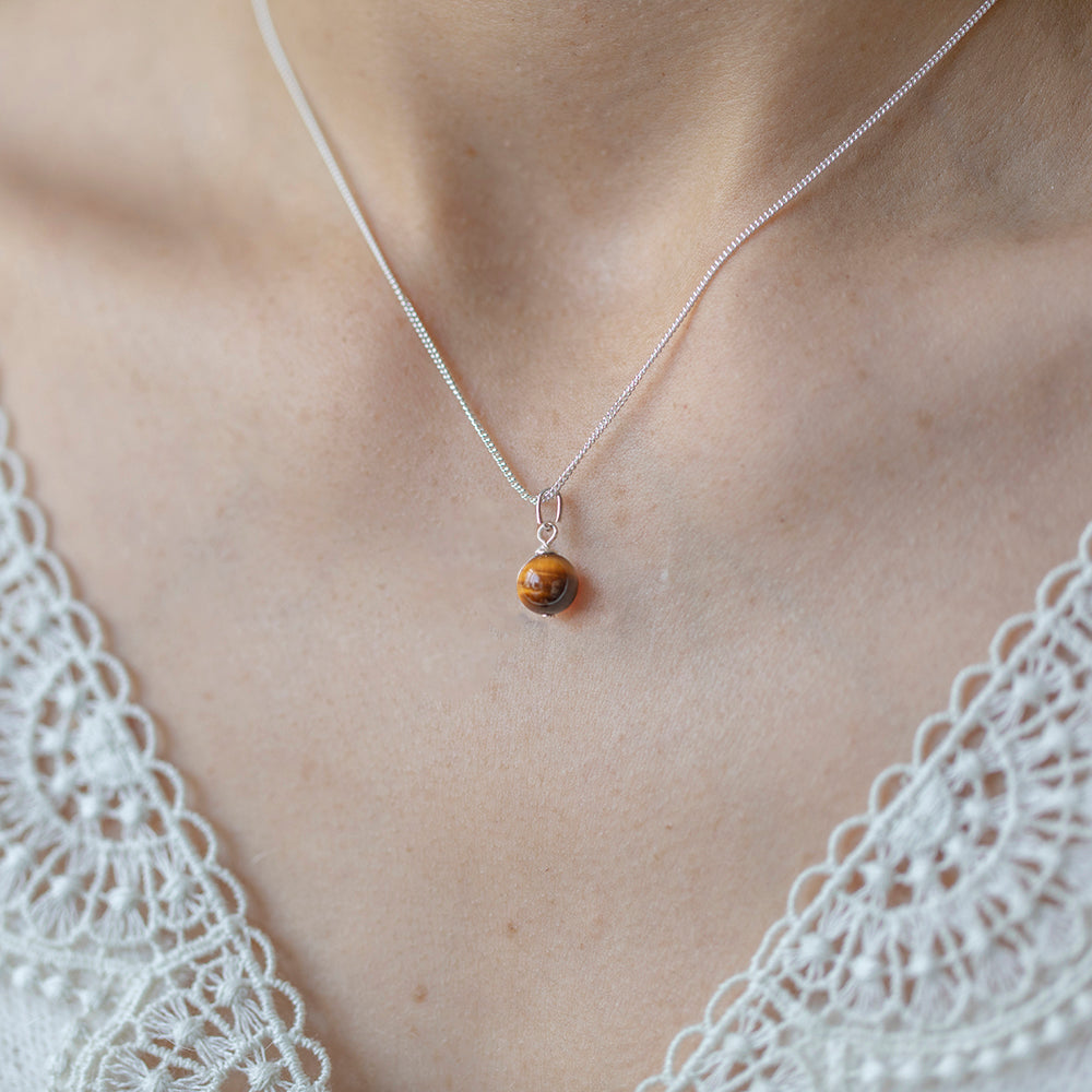 Quiet, refined, and beautifully simple, this necklace features a single Tiger’s Eye bead - warm brown with natural golden bands that shift softly in the light. Suspended on a sterling silver chain, it brings a grounded touch of colour and intention to your everyday style.