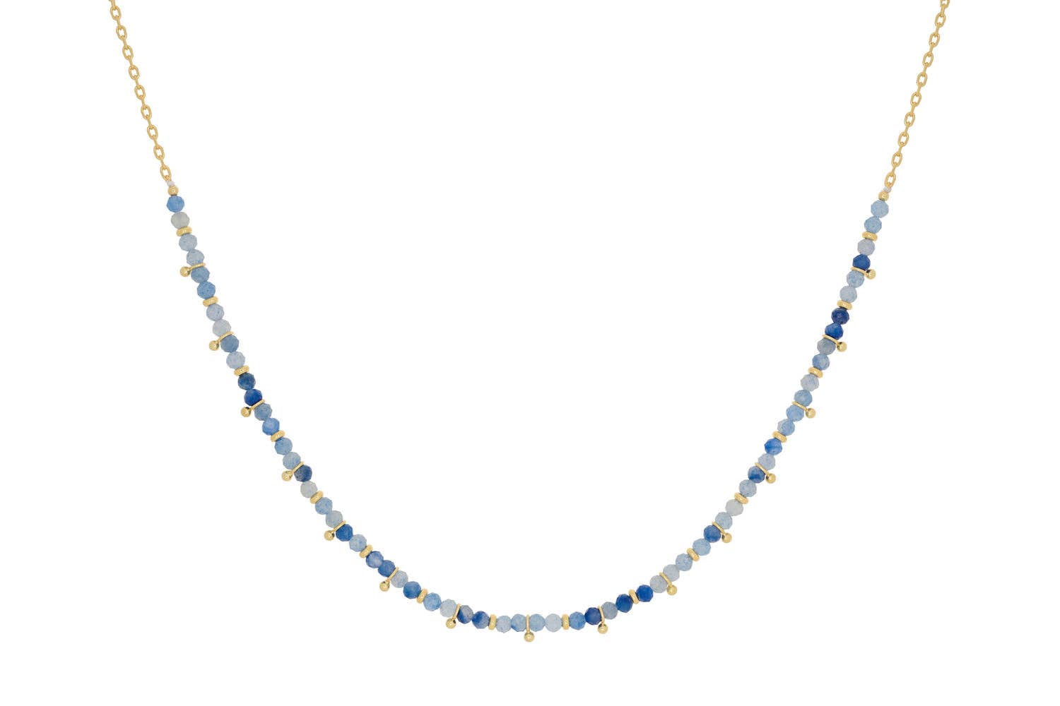 This beautiful Blue Aventurine Gemstone Necklace. Crafted from natural blue aventurine and finished in gold plate, this stunning piece brings a cool, refined touch of colour to any outfit. Its soft denim-blue tone adds effortless sophistication, making it a perfect everyday statement with just the right amount of glamour.