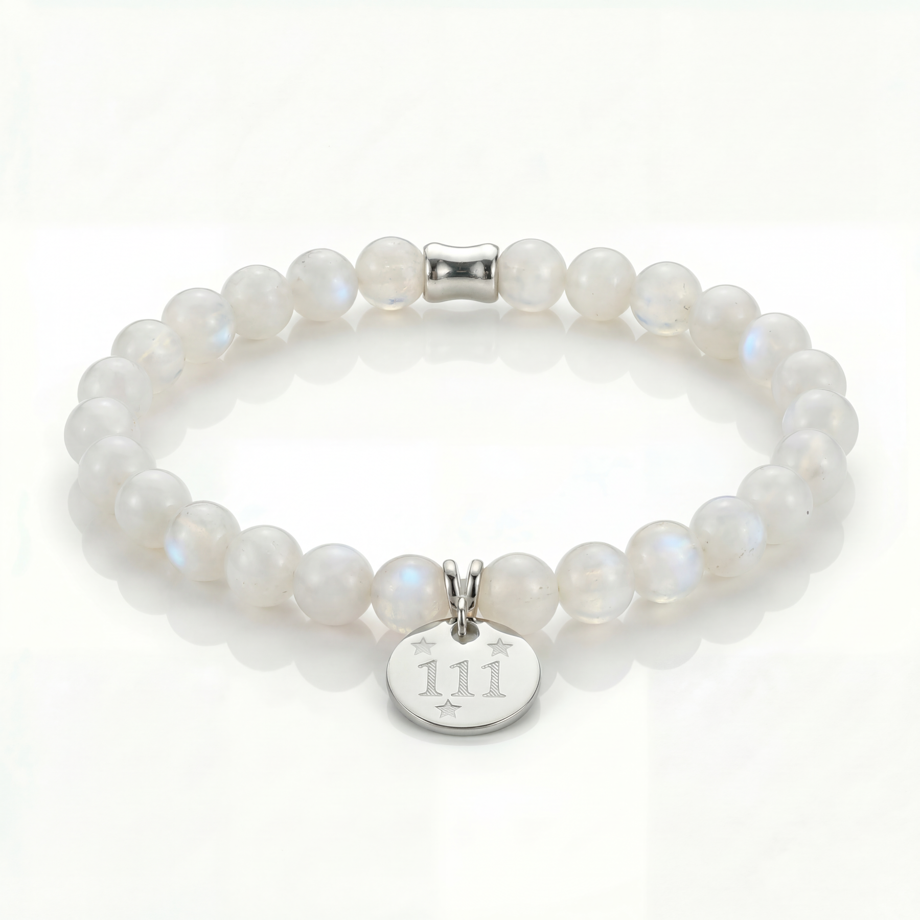 Rainbow Moonstone is known as a stone of intuition and emotional insight. It is commonly associated with fresh starts, inner clarity, and gentle reassurance during times of change. Paired with angel number 111, it creates a bracelet that feels calm, purposeful, and quietly empowering.